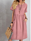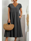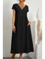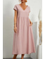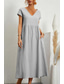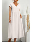 Dam Midiklänning Skiftklänning Solklänning Vit klänning Klänningar i bomullslinne Ledigt Dagligen Semester Lös passning Slät Kortärmad V-hals Blå Svart Vit Rodnande Rosa Sommar Vår