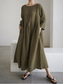 Dam Maxiklänning Konstbomullslinne Skiftklänning Vardagsklänning Maxiklänning i bomull Grundläggande Ledigt Dagligen Semester Normal Slät Långärmad Rund hals Gul Marinblå Grön Beige Vår Höst