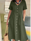 Dam Maxiklänning Konstbomullslinne Skiftklänning Skjortklänning Vardagsklänning Ledigt vardag Ledigt Gatustil Dagligen Semester Helgen Lös passning Slät Kortärmad Tröjkrage Svart Vin Marinblå Grön