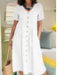 Dam Midiklänning Skiftklänning Skjortklänning Vit klänning Klänningar i bomullslinne Semester Grundläggande Modern Dagligen Helgen Lös passning Slät Kortärmad V-hals Blå ArmyGreen Svart Vit Sommar Vår