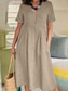 Dam Midiklänning Långklänning Maxiklänning Konstbomullslinne Skiftklänning Elegant Stylish Grundläggande Dagligen Arbete Semester Normal Slät Kortärmad Rund hals Rodnande Rosa Ljusbrun Kaki Mörkblå