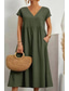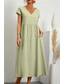 Dam Midiklänning Konstbomullslinne Skiftklänning Grundläggande Klassisk Modern Dagligen Semester Helgdag Normal Slät Kortärmad V-hals Svart Ljusgrön Rodnande Rosa Armégrön Sommar