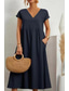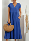 Dam Maxiklänning 100% Bomuld Skiftklänning Skjortklänning Vit klänning Ledigt Dagligen Semester Lös passning Slät 3/4 ärm V-hals Svart Vit Rodnande Rosa Marinblå Sommar Vår