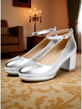 eleganta 1980-tals klackar med t-rem i metall i silver med spetsig tå och spänndetalj – perfekt för kvällsfester eller formella evenemang
