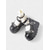 damskor från 1980-talet med gotiska Mary Jane-klackar - svarta lackskor med dubbla remmar och dödskalleklackar för halloween, cosplay och retro-skräckfester