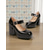 Svarta damskor med platåmönster från 1980-talet, Mary Jane-detaljer, spännen och hjärtformade nitar – gotisk punk-lolita-stil för halloween, cosplay och utekvällar