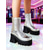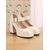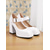 Vita damstövlar i glansigt lack i konstläder med grova blockklackar, disco-mod-stil från 1980-talet, perfekta för retrofester, kostymevenemang och utekvällar