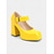 Damskor i orange och fuchsia metallic med t-rem – färgblocksfärgade, spetsiga retro-kittelpumps för dansfester, nattklubbar och vintage-evenemang från 1970-talet