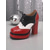 Röda och svarta platåklackar med färgblock och snörning för kvinnor – perfekta för fester, utekvällar och speciella evenemang med 80-talsdiscotema