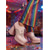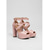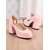 Rosa platåskor i damstil från 1970-talet - pumps i konstläder med pärlfärgad ankelrem och rosettband för bröllop, bal och vintage-tebjudningar