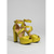 Dam med strålande limegula glitterplatåklackar - 70-tals disco-stil med grova höga sandaler och fotledsrem för retro-dansfester och musikfestivaler &nattklubbens glamour