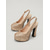 Damskor med guldfärgad platå och blockklack från 1980-talet - glänsande rund tå med ankelrem i retrostil för disco, dans och cocktailevenemang