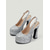 Damstövlar i silverfärgad metallic med platå, grova klackar och dragkedja - 80-tals discostil, trendiga festskor för utekvällar och dansevenemang