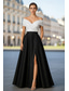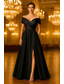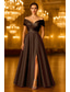 A-linje Golvlång Kvälls klänningar Balklänning Formell klädsel Elegant Silkig Ärmlös Över axeln Bröllop Formell Ficka Satäng Paljetter med Plisserat Slits
