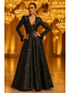 A-linje Golvlång Kvälls klänningar Balklänning Formell klädsel Elegant Glittriga Långärmad V-hals Bröllop Formell Ficka Paljetter med Glitter