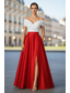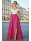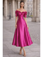 A-linje Telång Balklänningar Öppen rygg Sexig Kortärmad Över axeln Bal Bröllopsgäst Ficka Satäng med Plisserat Ren Färg
