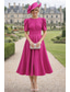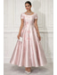 A-linje Ankellång Cocktailklänningar Elegant Blommig Kortärmad Båthals Kvällsfest Bröllop Rosa klänning Satäng med Broderad blomma Plisserat Applikationsbroderi