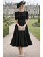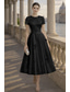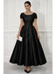 A-linje Telång Cocktailklänningar Elegant Semiformella klänningar Kortärmad Rund hals Trädgårdsfest Bröllop Ficka Satäng Djupt ringad rygg med Pärlor Plisserat