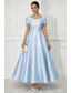 A-linje Ankellång Bröllopsklänningar Brudklänningar Brudklänning Vintage 1940- / 1950-tal Liten vit klänning Regelbundna band Fyrkantig hals Gradering Födelsedag Satäng med Rosett(er) Enfärgat