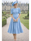 A-linje Telång Cocktailklänningar Elegant Kortärmad Rund hals Trädgårdsfest Bröllop Satäng med 3D-blommor Plisserat