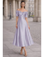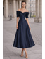 A-linje Telång Formell klädsel Cocktailklänningar Elegant Kortärmad Över axeln Bröllop Formell Satäng med 3D-blommor