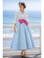 A-linje Telång Cocktailklänningar Festklänningar Elegant Halvlång ärm V-hals Trädgårdsfest Bröllop Satäng med Ficka