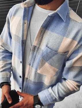 Herr Skjorta Rutig skjorta Skjorta med krage Fleeceskjorta Knapp upp skjorta Övertröja Pläd / Rutig Bröllop Fest A B C D Långärmad Fyrkantig hals Vinter Kläder Varm