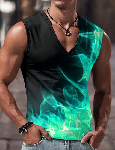 Herr Linne Ärmlös T-shirt för män Grafisk Låga V-hals Kläder 3D-tryck Sport Löpning Ärmlös 3D-utskrift Designer Ledigt Muskel