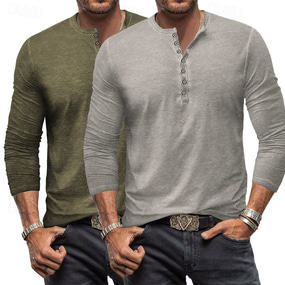 Herr Henleytröja T-tröja Långärmad tröja Långärmad Slät Enfärgat Vintage Mode Grundläggande 2 st Färgade plagg Flerpack Henley Ledigt Semester Gata Sommar Alla årstider 1 2 3 Henley T-shirt