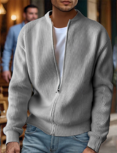 Herr Cardigan Tröja Beskuren tröja Blixtlåströja Stickad tröja Ribbad Sticka Vanliga toppar Ficka Slät Hög krage Mode Klassisk Semester Dagliga kläder Kläder Höst Vinter Svart Beige M L XL