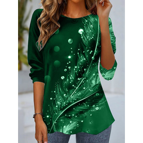 Dam T-shirt Rund hals Lång ärm Tunika Avslappnad tryck Vanliga Toppar Daglig Blå Lila Grön Vår Höst