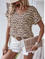 Dam T-shirt Mönster Leopard Mode Kortärmad V-hals Vanliga toppar Ledigt Dagligen Brun Sommar