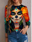 Dam T-shirt Skelett Skallar Grafisk Skelett Vintage Mode Stilig Lång Ärmar Crew Neck Rund Hals Regelbundna Toppar Daglig Helgtryck Svart Vinröd Mörkgrå Sommar Vår Höst