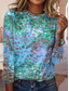 Dam T-shirt Mönster Blommig Grafisk Lutning Elegant Vintage Stylish Långärmad Rund hals V-hals Vanliga toppar Dagligen Aska Grön och Blå Regnbåge Sommar Vår Höst