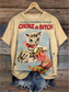 Dam T-shirt Skulls Grafik Katt Vintage Stilig Klassisk Kortärmad Crew Neck Rund Nack Regular Topp Daglig Helg Tryck Vit Svart Svart Vit Gul Rosa Sommar Höst