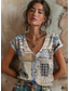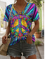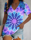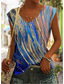 Dam T-shirt Mönster Nyans Grafisk Knytbatik Vintage Stylish Ledigt Kortärmad V-hals Vanliga toppar Dagligen Blå Sommar Vår