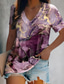 Dam T-shirt Mönster Blommig Grafisk Vintage Stylish Klassisk Kortärmad V-hals Vanliga toppar Dagligen Aska Gul Orange Ros rosa Sommar Vår