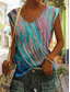 Dam T-shirt Mönster Grafisk Knytbatik Tropisk Stylish Ledigt Ärmlös V-hals Vanliga toppar Dagligen Utekväll Helgen Blå Gul Grön Sommar Vår