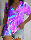 Kvinnors T Shirt Sommartoppar Tie Dye Avslappnad Ämlös Korta Ärmar V Hals Regular Top Daily Print Blå Lila Fuchsia Ljusblå Sommar Vår
