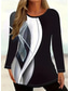 Kvinnors T-shirt Crew Neck Långärmad Tunika Avslappnad Tryck Kortärmad Regula Tops Dagstryck Svart Sommar