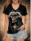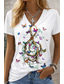 Dam T-shirt Skallar Blommor Randig Stilig Avslappnad Rolig Kortärmad V-hals Regular Tops Daglig Söta Kläder Dejtnatt Kläder Tryck Svart Sommar Vår Höst