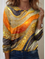 Kvinnors T-shirt Crew Neck Lång ärm Tunika Ombre Geometrisk Modern Avslappnad Vanliga Toppar Dagligt Helg Tryck Blå Orange Höst Vinter