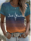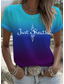Dam T-shirt Mönster Nyans Grafisk Bokstav Vintage Stylish Klassisk Kortärmad Rund hals Vanliga toppar Dagligen Helgen Blå Dammig blå Purpur Grön Sommar Vår