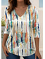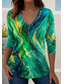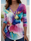 Dam T-shirt Ombre Grafisk Abstrakt Elegant Vintage Stilig 3/4 Längd Ärmar V-ringad Lång Toppar Dagliga Utegång Knappar Blå Röd Orange Grön Sommar Vår Höst