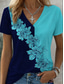 Dam T-shirt Henleytröja Mönster Löv Blommor Grundläggande Kortärmad V-hals Vanliga toppar Helgdag Helgen Blå Vit Rodnande Rosa Marinblå Ljusblå