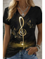 musikfestival Dam T-shirt Mönster Grafisk Musik Ledigt Kortärmad V-hals Vanliga toppar Dagligen Helgen Semesterkläder Svart Sommar