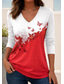 Dam T-shirt Mönster Blommig Grafisk Musik Vintage Stylish Klassisk Kortärmad V-hals Vanliga toppar Dagligen Gym Sport Vit Elfenben Röd / blå Sommar Vår