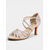 Damskor med guldfärgade latinska dansskor med korsband och mellanhög klack - vintage Gatsby-klackar för fest och balsal