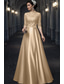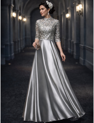 A-linje Golvlång Bröllopsgästklänning Formell klädsel Aftonklänning Klänning till brudens mor Halvlång ärm Hög hals Elegant Vintage Bröllopsgäst Bröllopsfest Satäng med Rosett(er) Applikationsbroderi