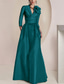 A-linje Golvlång Bröllopsgästklänning Formell klädsel Konståkningsinspirerad klänning Klänning till brudens mor Halvlång ärm V-hals Elegant Vintage Bröllop Formell med Rosett(er) Med remmar